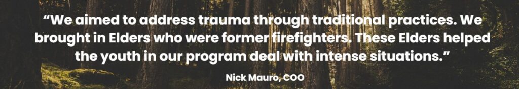 Born out of the Beat the Heat bootcamp, an intensive training program for wildland firefighting, the Resilience Training and Healing Program was created to address the emotional toll of emergency response work. Many trainees arrive carrying trauma, and the high-pressure environment of firefighting can trigger memories that are rarely talked about, let alone supported. YFNW tackled this head-on with a holistic program grounded in four pillars: traditional land management, on-the-land healing, mentorship, and financial literacy.